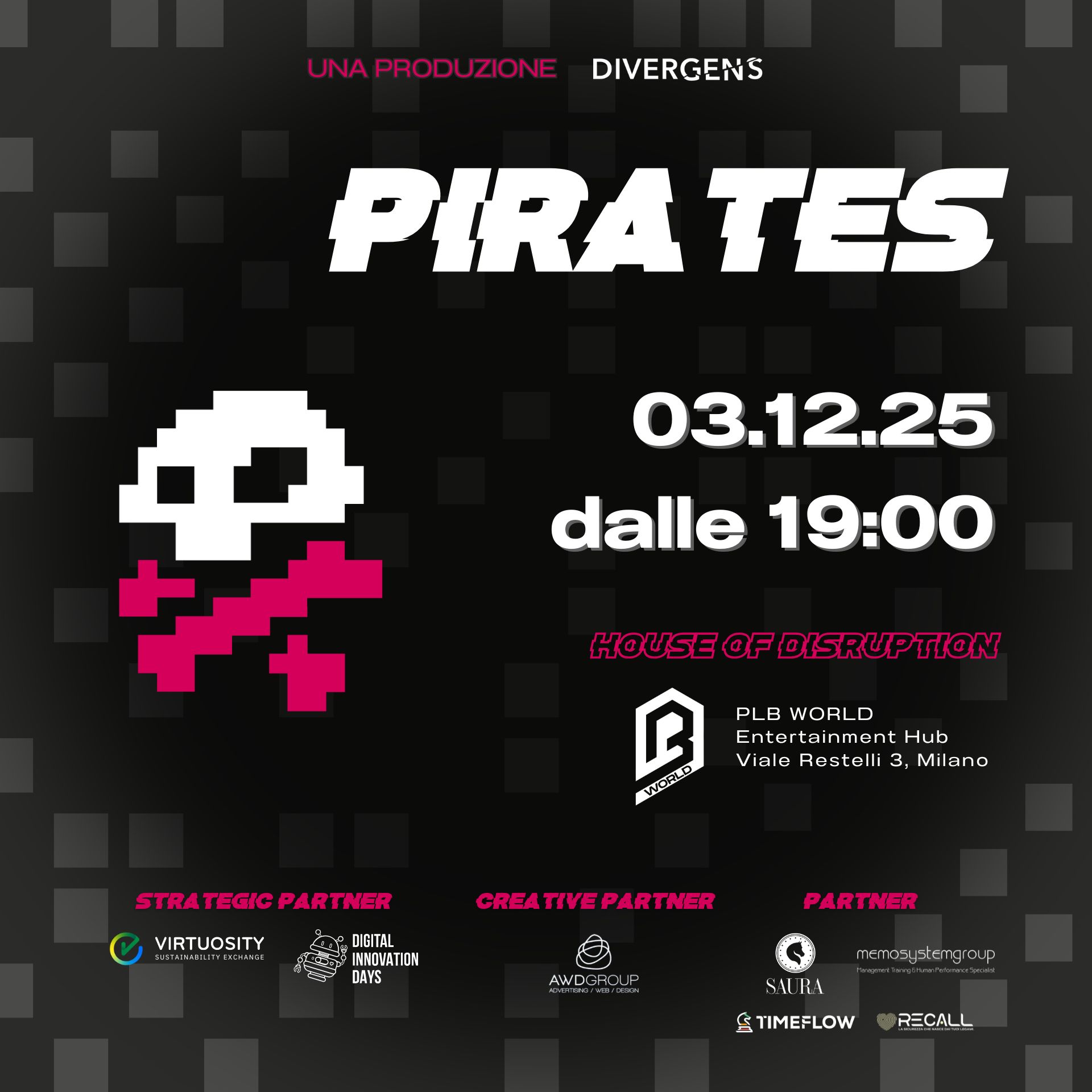 Ribelli, divergenti, fuori rotta: chi lancia un'impresa o un modo diverso di fare impresa sfida il sistema da dentro, con una visione e una mappa del tesoro tutta sua. Pirates è l’evento live firmato Divergens dove innovatori e startupper si raccontano senza filtri: storie, errori, paure e intuizioni dal cuore del cambiamento.